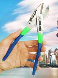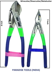 A heavy wire cutter, also known as a tin cutter, is a tool used for cutting heavy-gauge wires, cables, and sometimes even sheet metal. It typically consists of two strong, sharpened blades made of high-grade steel that are hinged together at one end and have handles at the other end for leverage and grip. The blades are designed to make a clean, precise cut through the wire or cable, and the handles are often coated with rubber or plastic for added comfort and grip. Some heavy wire cutters also have a locking mechanism to keep the blades securely closed when not in use. These tools are commonly used in construction, electrical work, automotive repair, and other industrial applications where heavy-duty wire and cable cutting is necessary. They come in a variety of sizes and designs to suit different cutting needs, and some models even feature additional functions such as crimping or stripping wires.