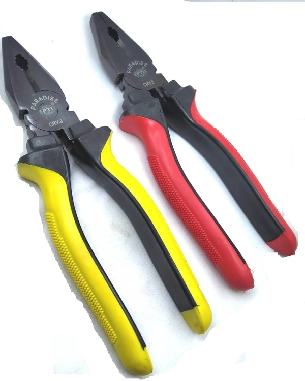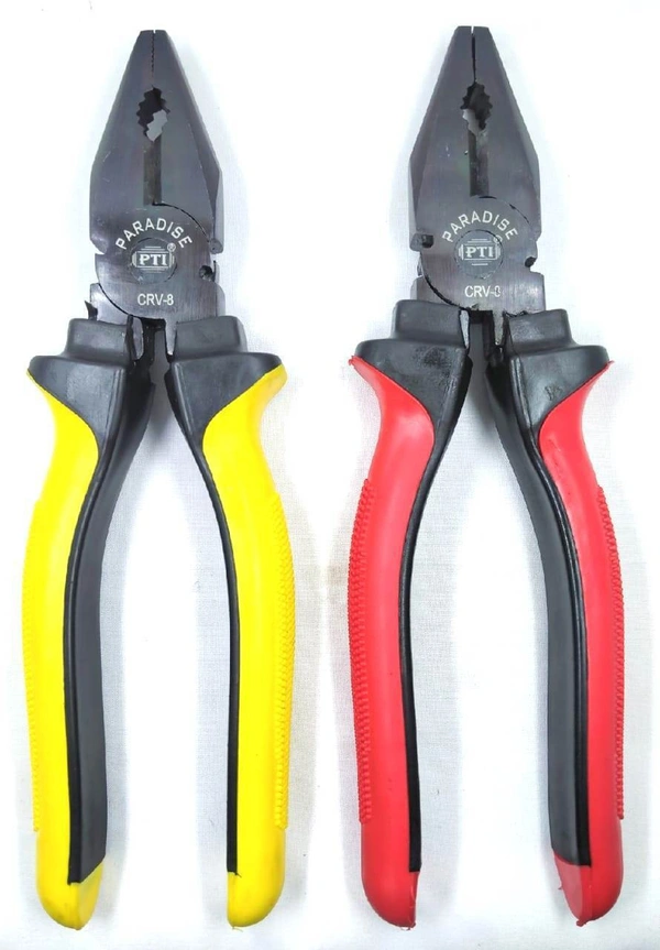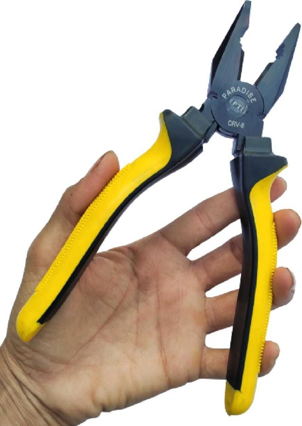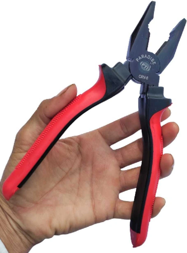 A combination plier is a hand tool used for gripping, cutting and bending wire. An 8-inch combination plier typically has a forged, heat-treated steel construction for strength and durability, with a soft grip handle for comfortable use. The plier has multiple functions including cutting wire, gripping and twisting wires, and bending wires. It has two pairs of jaws: one for gripping and the other for cutting. The cutting jaws are sharpened for efficient cutting of wire, while the gripping jaws have teeth to hold objects securely. Plier is designed to help lineman and electricians work with wire and cables. The plier is designed to let them cut, strip or twist wires conveniently.