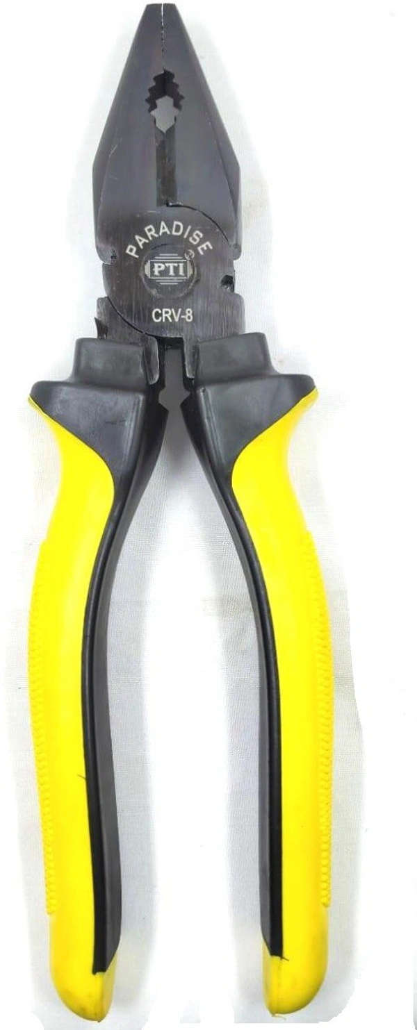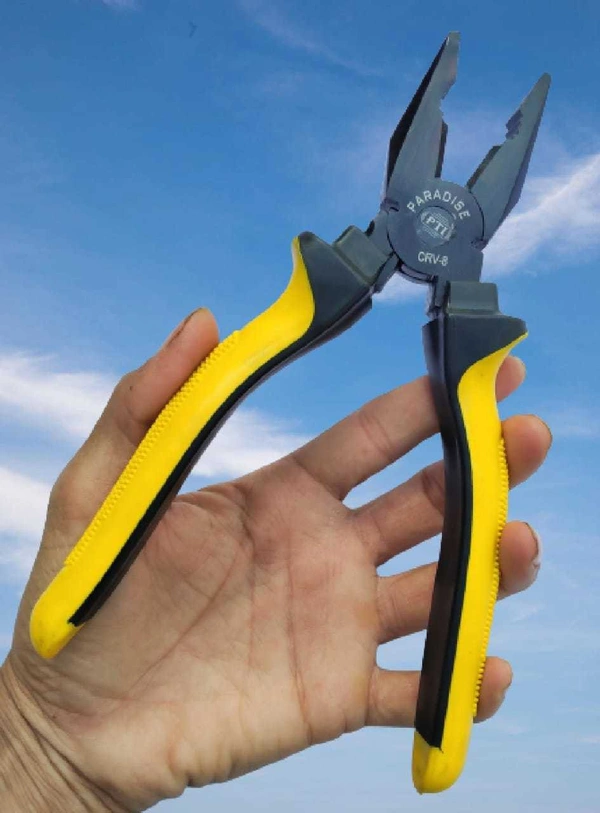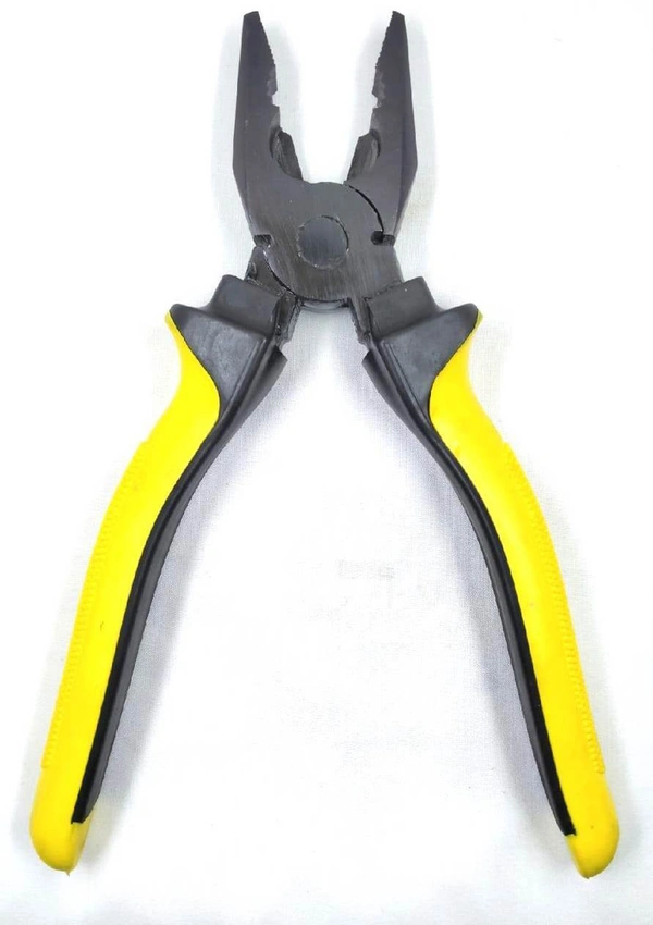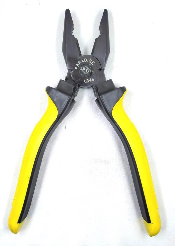 A combination plier is a hand tool used for gripping, cutting and bending wire. An 8-inch combination plier typically has a forged, heat-treated steel construction for strength and durability, with a soft grip handle for comfortable use. The plier has multiple functions including cutting wire, gripping and twisting wires, and bending wires. It has two pairs of jaws: one for gripping and the other for cutting. The cutting jaws are sharpened for efficient cutting of wire, while the gripping jaws have teeth to hold objects securely. Plier is designed to help lineman and electricians work with wire and cables. The plier is designed to let them cut, strip or twist wires conveniently.