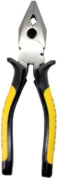 A combination plier is a hand tool used for gripping, cutting and bending wire. An 8-inch combination plier typically has a forged, heat-treated steel construction for strength and durability, with a soft grip handle for comfortable use. The plier has multiple functions including cutting wire, gripping and twisting wires, and bending wires. It has two pairs of jaws: one for gripping and the other for cutting. The cutting jaws are sharpened for efficient cutting of wire, while the gripping jaws have teeth to hold objects securely. Plier is designed to help lineman and electricians work with wire and cables. The plier is designed to let them cut, strip or twist wires conveniently.