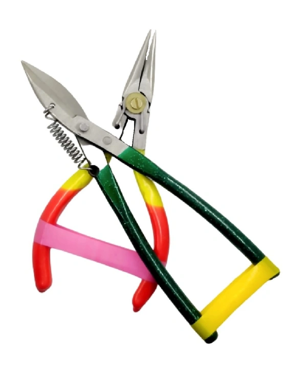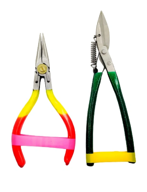 Jewellery making pliers are specialized tools used for shaping, manipulating, and cutting wire, metal, and other jewellery-making materials. They typically have a box-joint construction with two handles, a pivot joint, and various shaped jaws for different tasks. Common types of jewellery making pliers include chain-nose pliers, round-nose pliers, flat-nose pliers, wire cutters, and crimping pliers. Chain-nose pliers have narrow, tapered jaws for gripping and bending wire, while round-nose pliers have round, tapered jaws for creating loops and curves. Flat-nose pliers have wide, flat jaws for gripping and shaping metal, and wire cutters have sharp blades for cutting through wire. Crimping pliers have notched jaws for securing beads and clasps onto wire. Jewellery making pliers can be made from various materials, such as carbon steel, stainless steel, or titanium, and come in different sizes and shapes for different jewellery-making tasks.