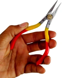 Jewellery making pliers are specialized tools used for shaping, manipulating, and cutting wire, metal, and other jewellery-making materials. They typically have a box-joint construction with two handles, a pivot joint, and various shaped jaws for different tasks. Common types of jewellery making pliers include chain-nose pliers, round-nose pliers, flat-nose pliers, wire cutters, and crimping pliers. Chain-nose pliers have narrow, tapered jaws for gripping and bending wire, while round-nose pliers have round, tapered jaws for creating loops and curves. Flat-nose pliers have wide, flat jaws for gripping and shaping metal, and wire cutters have sharp blades for cutting through wire. Crimping pliers have notched jaws for securing beads and clasps onto wire. Jewellery making pliers can be made from various materials, such as carbon steel, stainless steel, or titanium, and come in different sizes and shapes for different jewellery-making tasks.