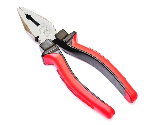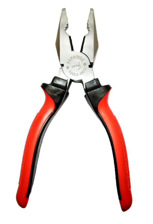 A combination plier is a hand tool used for gripping, cutting and bending wire. An 8-inch combination plier typically has a forged, heat-treated steel construction for strength and durability, with a soft grip handle for comfortable use. The plier has multiple functions including cutting wire, gripping and twisting wires, and bending wires. It has two pairs of jaws: one for gripping and the other for cutting. The cutting jaws are sharpened for efficient cutting of wire, while the gripping jaws have teeth to hold objects securely. Plier is designed to help lineman and electricians work with wire and cables. The plier is designed to let them cut, strip or twist wires conveniently.